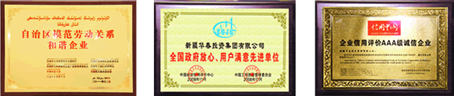 華春投資集團被評為中國優秀企業、全國行業質量服務信譽AAA級單位、“全國政府放心用戶滿意先進單位”、“(首批)全國建設信用誠信企業”、全國制造行業質量服務信譽AAA級單位、“全國政府放心、用戶滿意先進單位”、全國建設信用誠信企業、企業信用評價AAA①級誠信企業、值得新疆人驕傲的品牌十強企業等等。